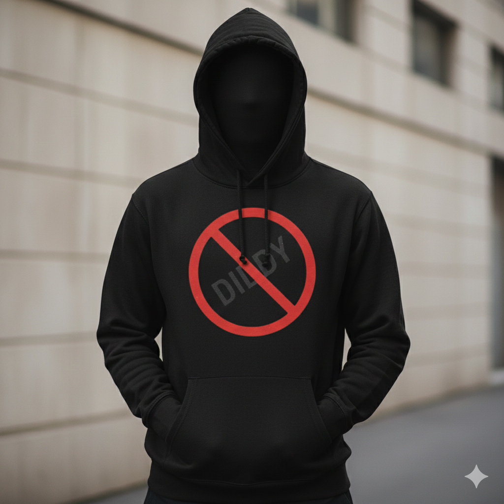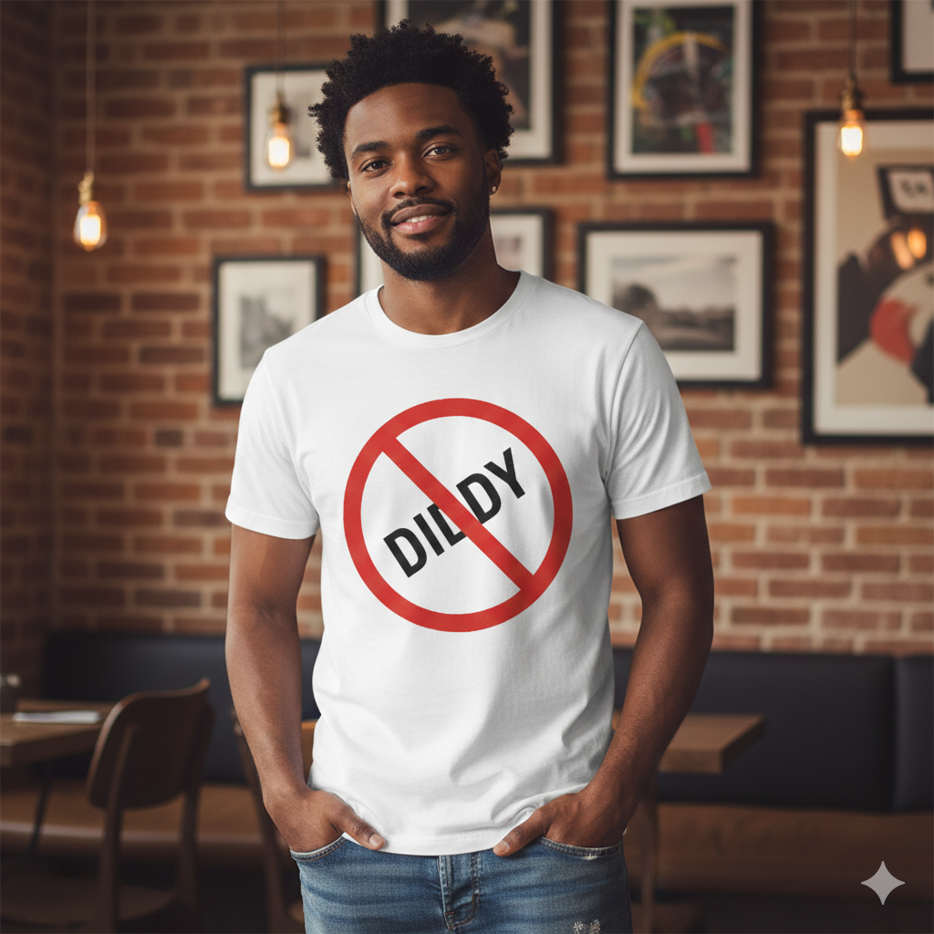 Powerful Graphic: Features the high-impact "No Diddy" logo (Red No-Symbol over dark grey text) centered on the chest.